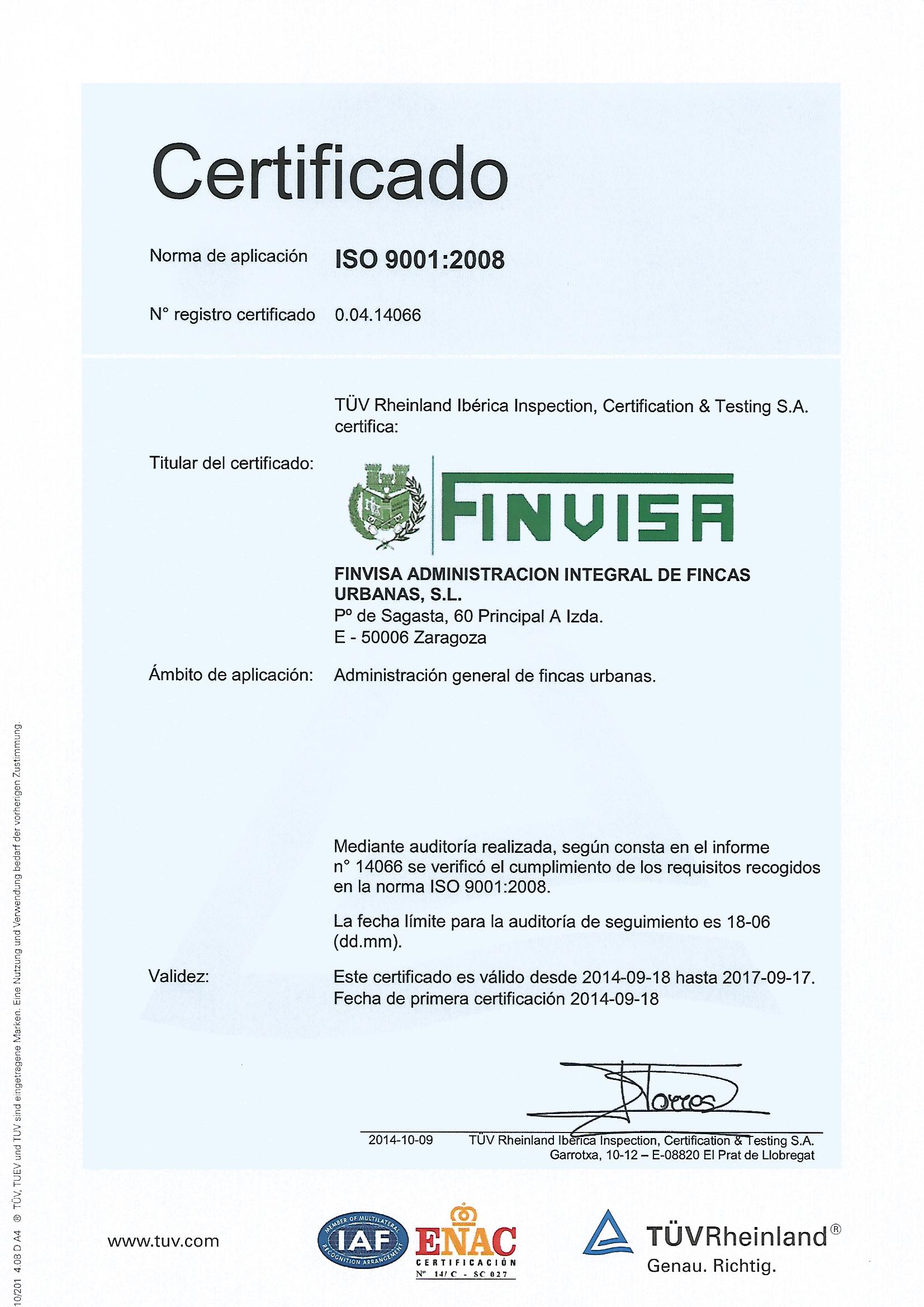 Desde Finvisa se garantizan las revisiones periódicas exigidas por el Reglamento de Instalaciones de Protección Contra Incendios (RD 1942/ 1993). El objetivo es incrementar las condiciones de seguridad por encima de los mínimos exigibles por normativa. En Finvisa, que cuenta con la certificación ISO 9001:2000, se busca a través de la instalación de protección contra incendios preservar la vida de las personas y minimizar los daños provocados por el fuego en los hogares de nuestros clientes.